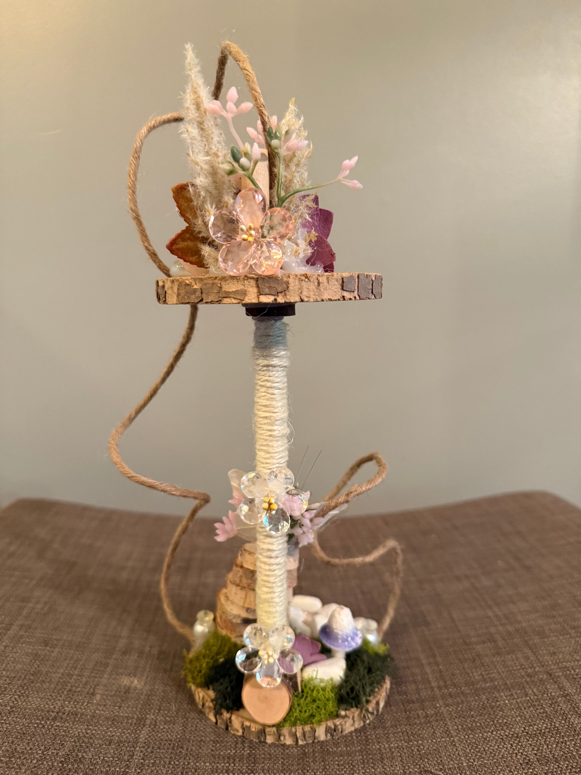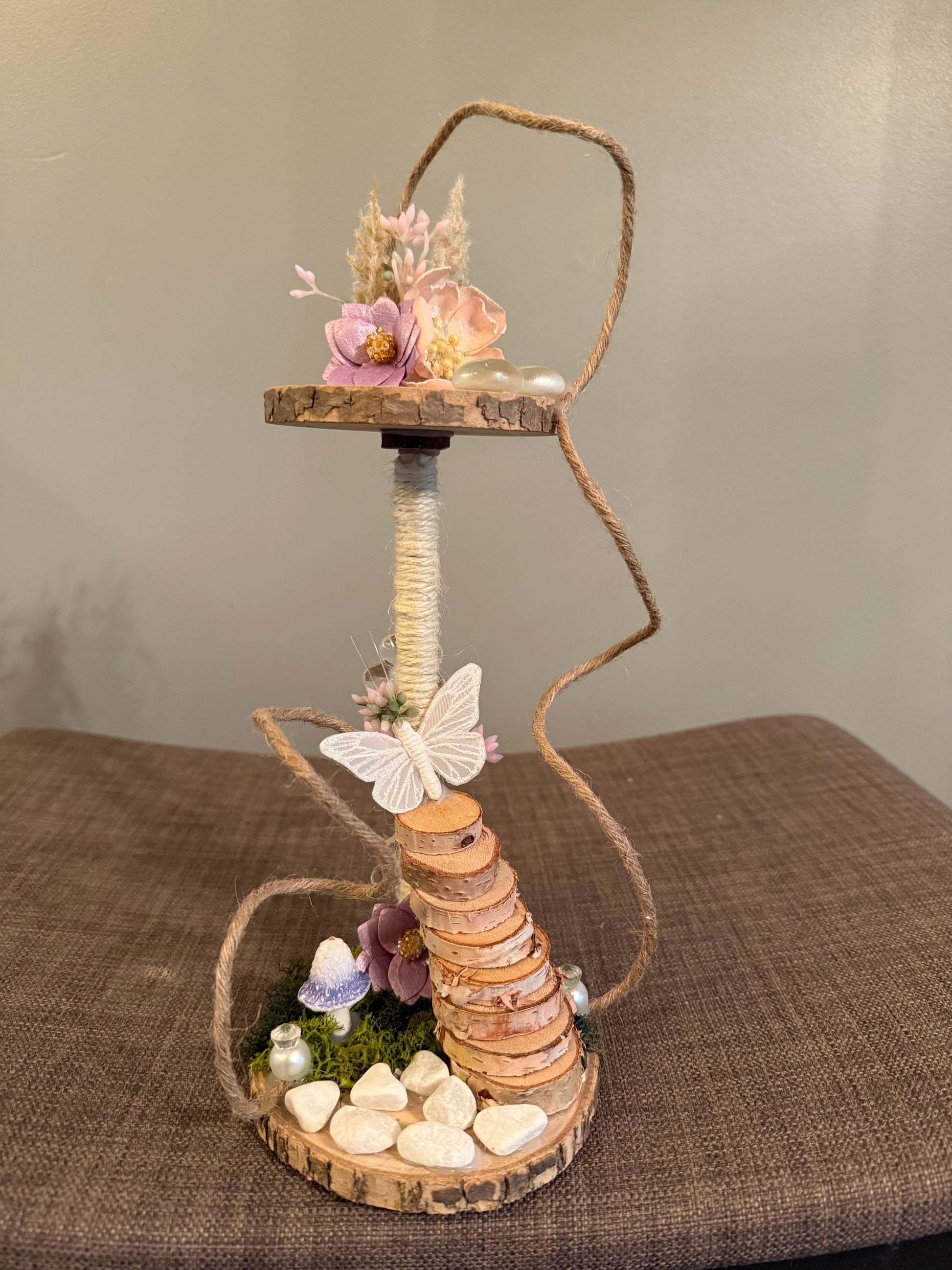 This medium sized spider playground is inspired by fairy gardens and made entirely by hand. With real wood, soft moss, and natural touches, it offers plenty of cozy textures and spots to explore. Everything is sealed with a non-toxic, water-based finish to keep it safe for your jumping spider while helping it last a little longer.